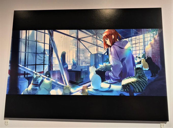 #前田ミック さん(@m_mic_0707) #イラスト展「 #Andante 」開催中です。 実はツクルのスタッフルームにも #招き猫 を飾って(祭って?)おります✨不思議なご縁を感じます☺️ こちらの #キャンバスアートパネル はECサイトからもご購入いただけます。 item.rakuten.co.jp/kinkos-gift/10… #キンコーズギフト