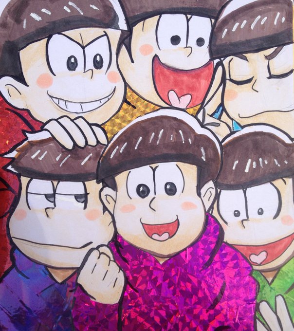 昔描いたおそ松さん(キラシール使用)と塗装したおそ松さん消しゴム人形再掲載 おそ松達がイヤミより人気者になる事に驚きました #おそ松さん #絵描きさんフォロバ100 #絵描きさんと繋がりたい #みんなで楽しむtwitter展覧会 #キン消し