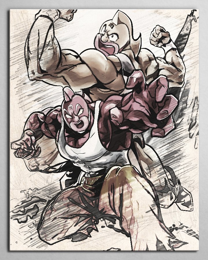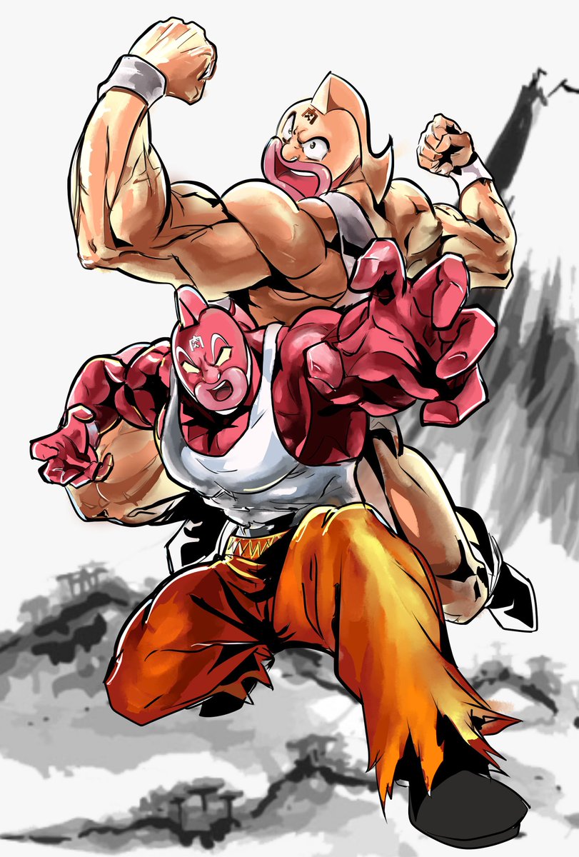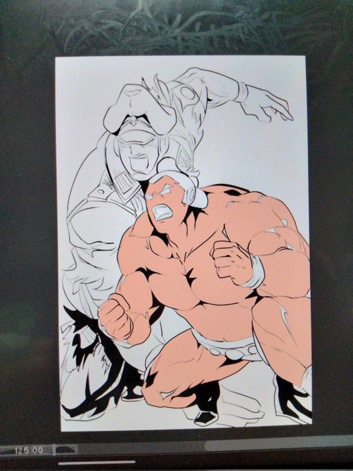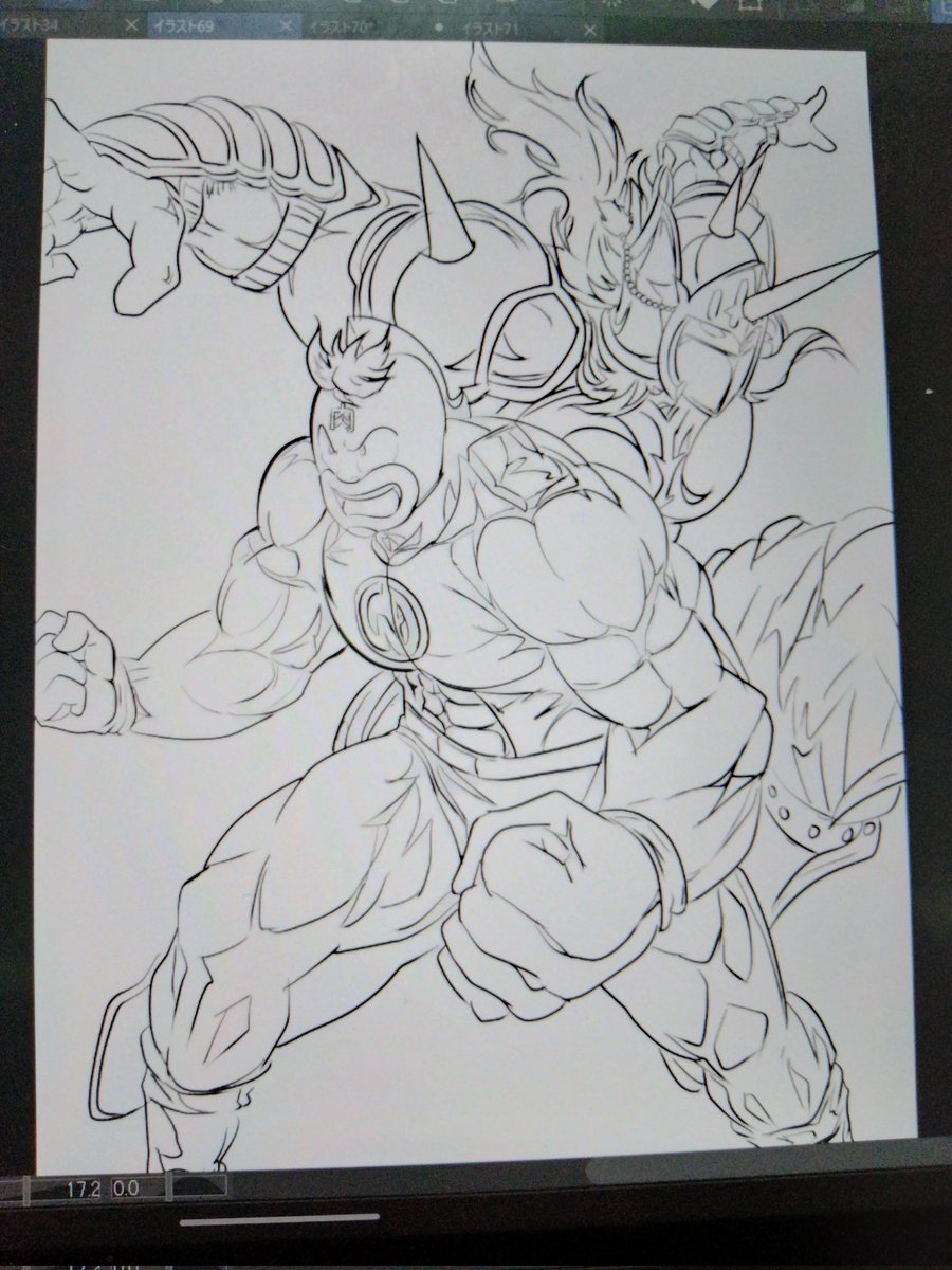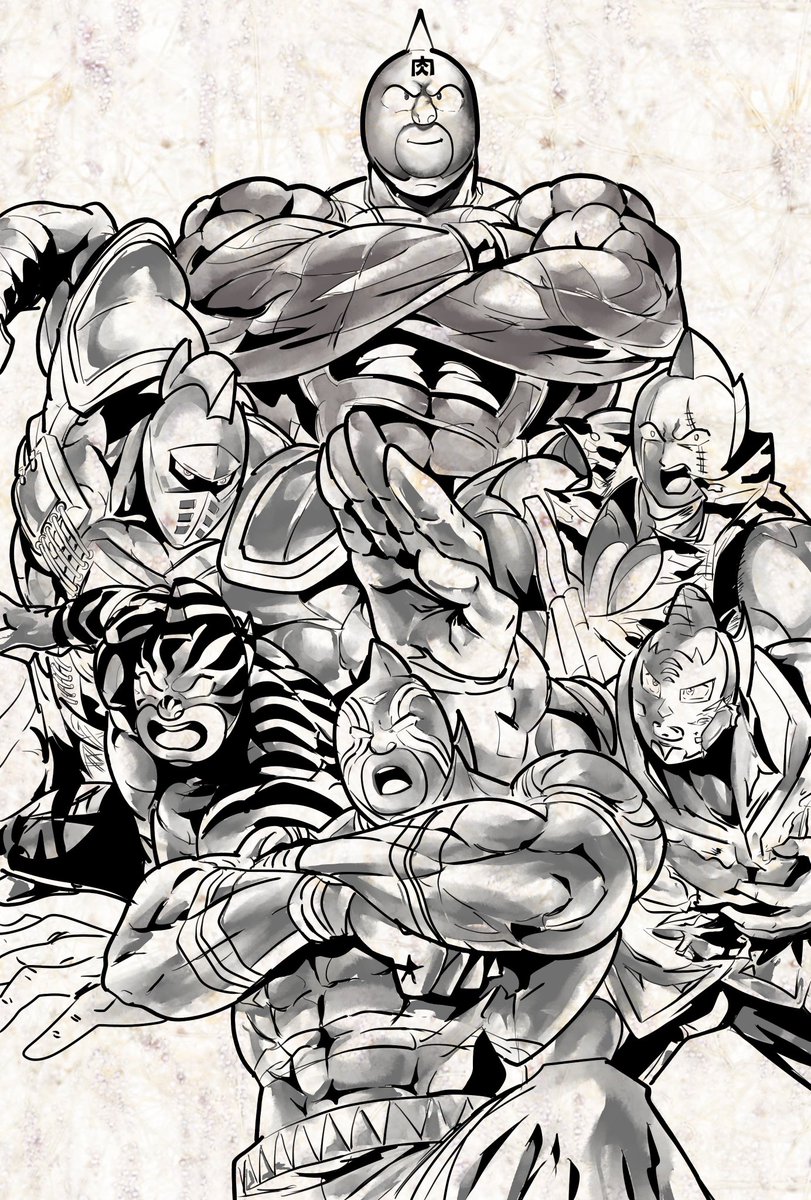ブロッケンJrの誕生日には仕上げたいこのチーム色塗り開始🎉 そして二世からのこのタッグペン入れ完成🎨 そしてボツネタ少しペン入れ進めてみた( *´꒳` ) #模写イラスト #キン肉マンアニメ放送40周年 #