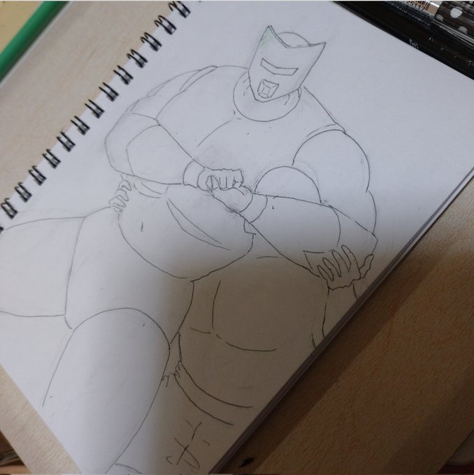 「剛腕超人 アームストロング」 下描き完成です。 明日、塗れたら色塗ります。 #キン肉マンアニメ化 #キン肉マン超人 #キン肉マンイラスト #ゆでたまご先生 #プロレス #プロレスイラスト #色鉛筆画 #色鉛筆イラスト #イラスト練習中 #いらすとぐらむ #japanesecomic #japaneseanimation #カナダ