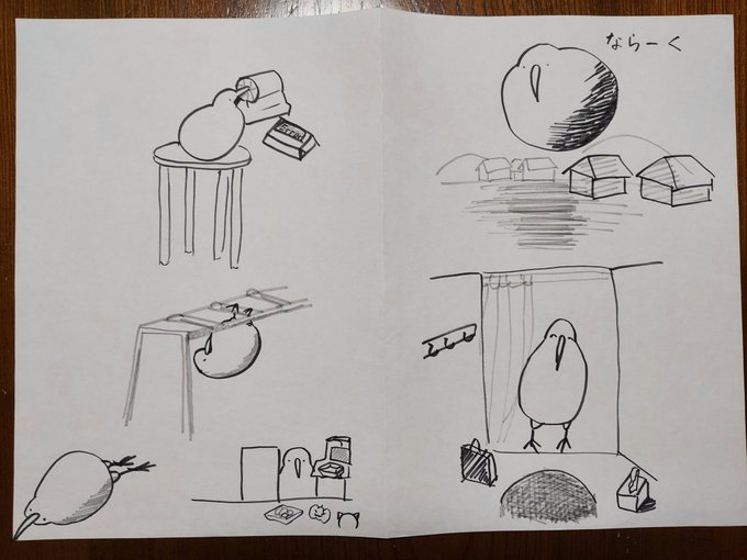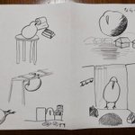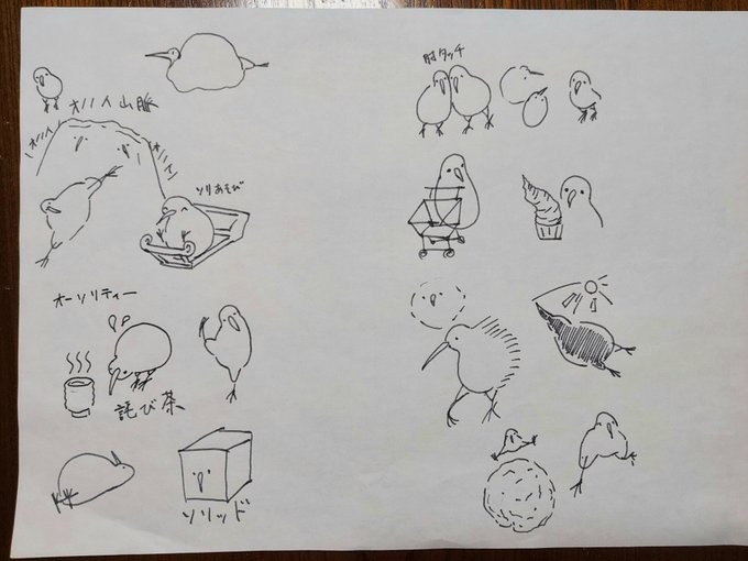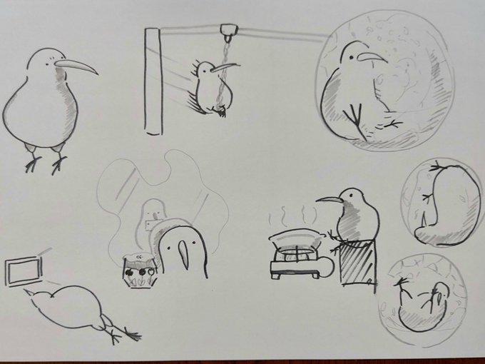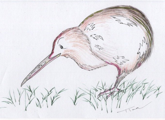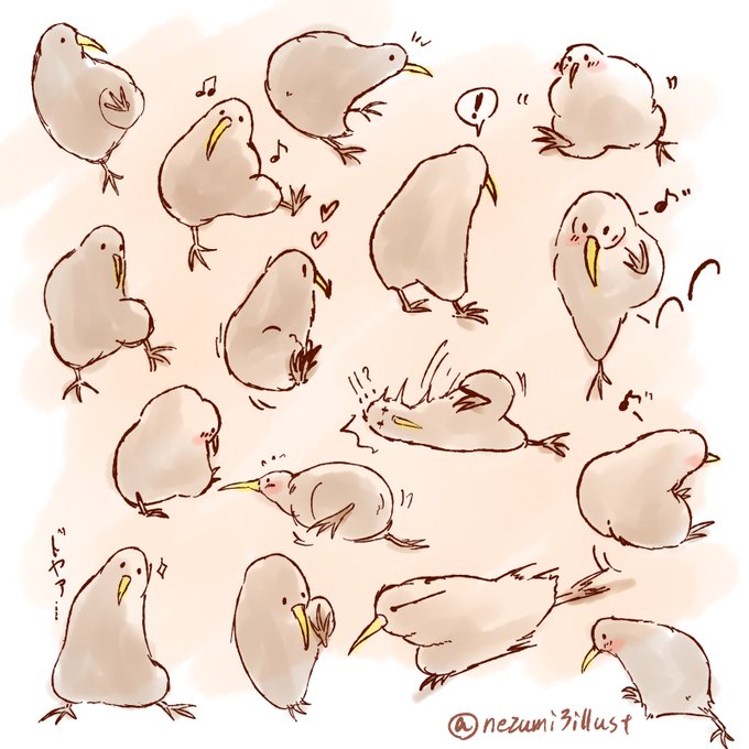 キーウィとヒヨコ🥝🐤 昼寝して起きたらヒヨコが寄り添ってて、ちょっと驚いてるキーウィみたいな感じ(:3_ヽ)_ 今日の落書き(5分) #落書き #キーウィ #ヒヨコ #イラスト好きさんと繋がりたい #オリジナルイラスト