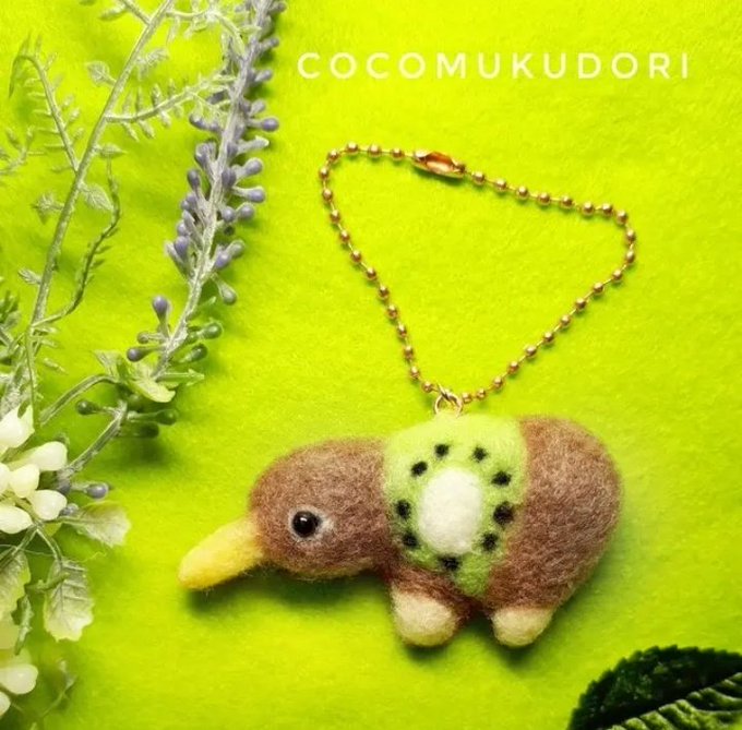 キーウィちゃん×キウイ 26日(土) #minne で販売します🍀 よろしくお願いします🐥 minne.com/@mukudori12 #羊毛フェルト #ハンドメイド好きな人と繋がりたい #鳥好きさんと繋がりたい #キーウィ #キウイ