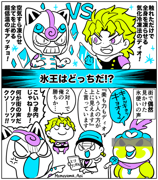 #JOJO版深夜の真剣お絵描き60分一本勝負 #ギアッチョ祭2022 お題「ギアッチョ」「一部ディオ」「ペット・ショップ」 ジョジョNo.1の氷使いは誰だ⁉️その答えが今、多数決で決まる…‼️⛄️❄️
