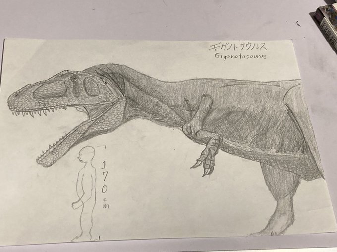 ギガノトサウルスを描きました!!ティラノサウルスと並ぶ史上最大級の獣脚類の一つ。 『ジュラシックワールド/ドミニオン』のプロローグ映像でのティラノサウルスと激突する姿は迫力満点!!来年公開の本編も楽しみですねぇ。 #ギガノトサウルス #獣脚類 #JurassicWorldDominion