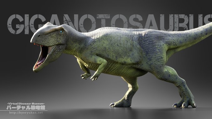 #Blender で #ギガノトサウルス 作りました! 先日の映画でも活躍した巨大な肉食恐竜。 カルカロドントサウルスやアロサウルスの仲間ですが、それらの中でもがっしりした体つきをしていました! #Giganotosaurus #blenderart #b3d #恐竜 #dinosaur #paleoart #paleontology #バーチャル恐竜館