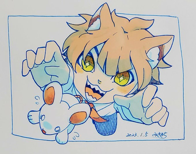 @blue10sei FF外から参加失礼します🙇 一次創作のオリキャラをメインに描いています 姫鶴シオンといいます🎵 二次創作もたまに描いています よろしくお願いします✨ #絵描き交流会 #イラスト好きな人と繋がりたい #illustration #人外 #ギザ歯 #男の子 #人形 #絵柄が好みっていう人にフォローされたい
