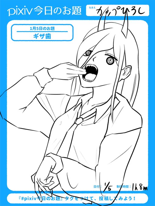 みなさんこんばんは! パワーちゃんムズすぎてめちゃくちゃ時間かかっちった( ´∀`)く〜〜〜 いつも手が迷子🙋♂️ #ギザ歯 #pixiv今日のお題 #ひろしイラスト練習記 #毎朝ひろしイラスト帳