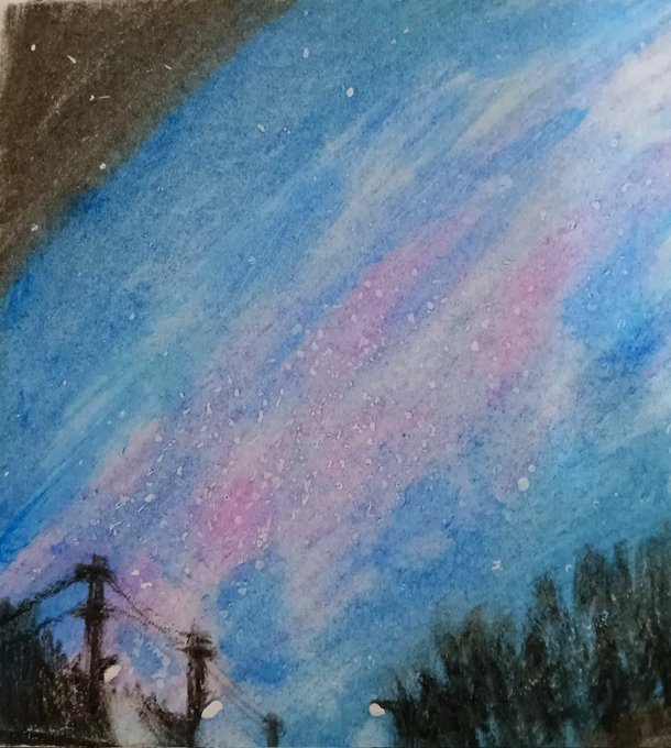 創作パステル画 「コスモスターサイクロン」 青系統を幾重にも折り重ねるように塗っては練り消しを当てる…の繰り返しでできた #天の川。 #オイルパステル #色鉛筆 #ギャラクシープロファイル #絵描きさんと繋がりたい