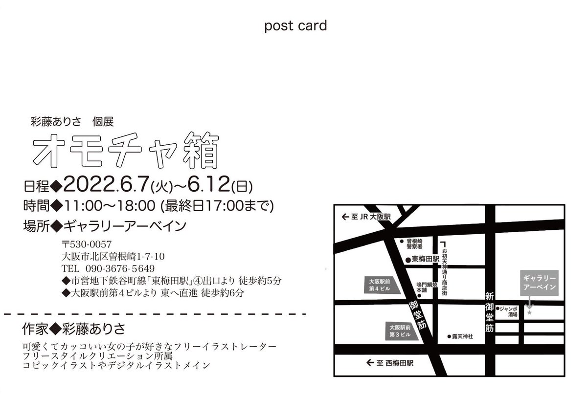 人生初の搬入作業🥺 終わりました〜✨ 【ポストカード関西アートカップ】 〈Cブロック:1/18(火)〜1/23(日)〉 お近くにお越しの際はぜひお立ち寄りください✨ 場所:#ギャラリーアーベイン 住所:大阪市北区曾根崎1-7-10(緑のテントが目印) #コピック #イラスト #イベント #絵描きさんと繋がりたい
