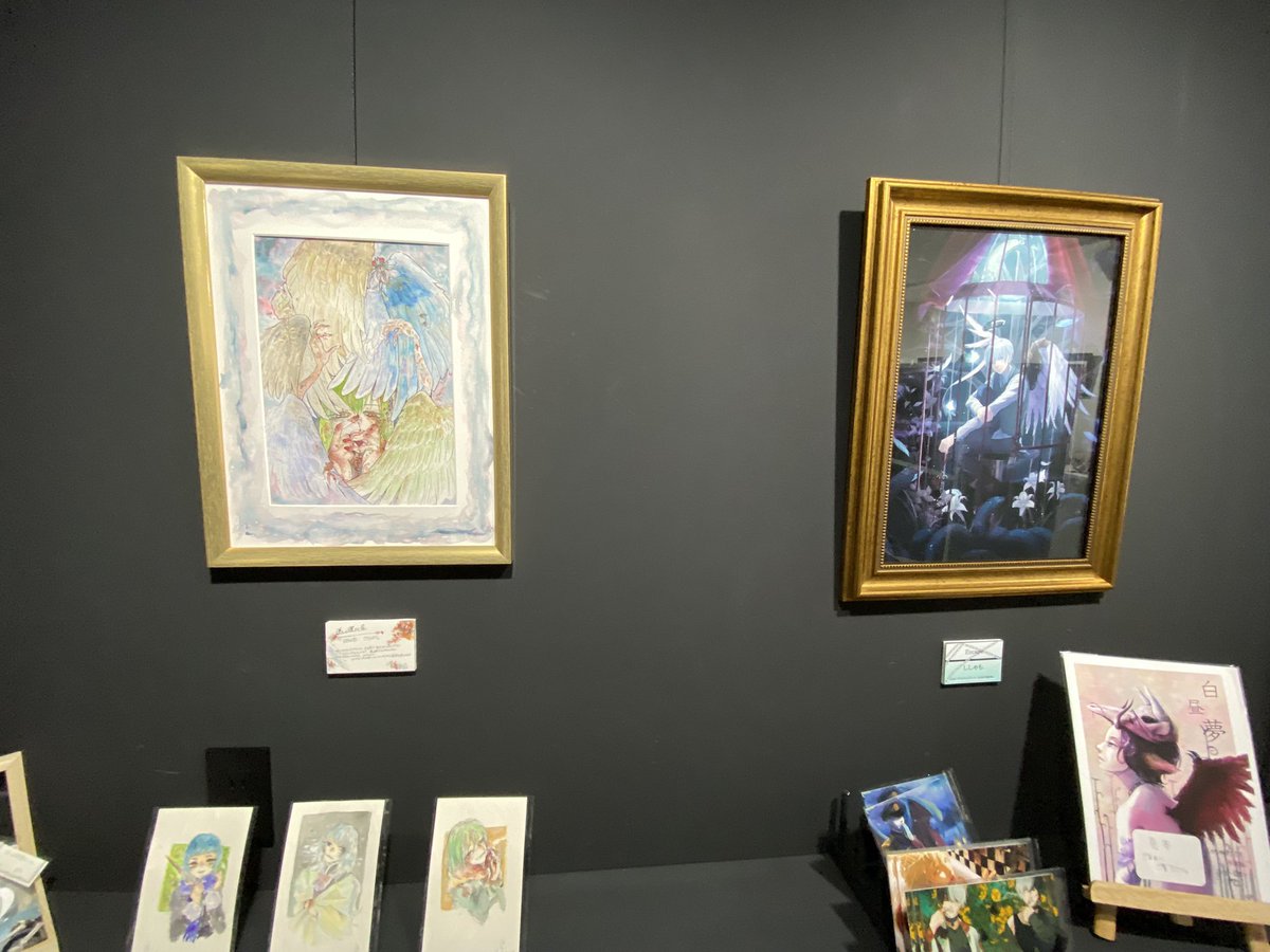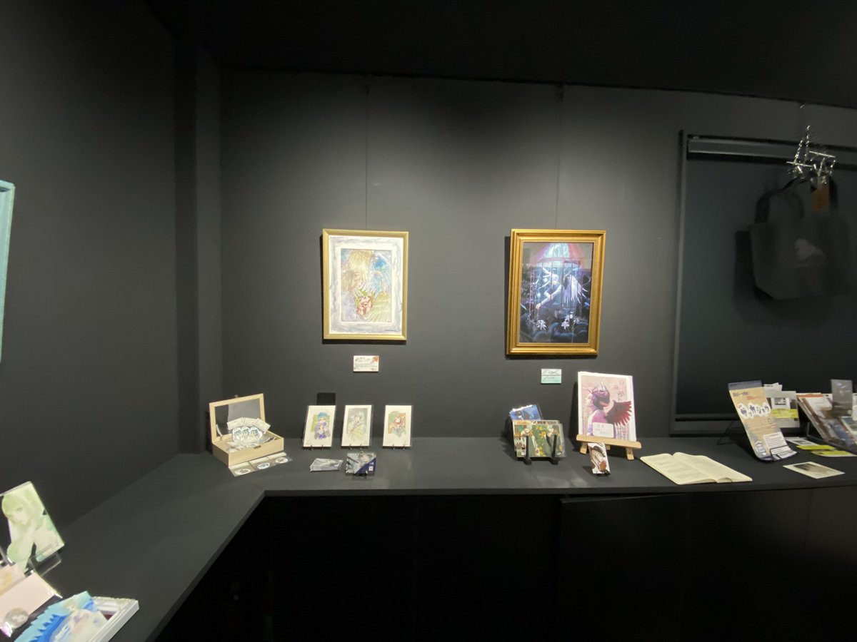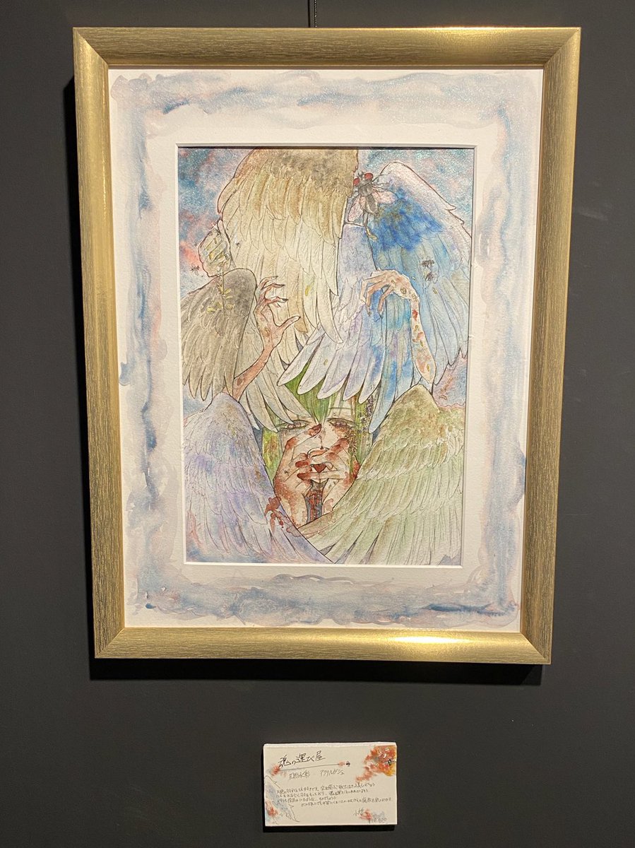 天使と悪魔展の展示の様子の画像いただきました! 黒スペースよいかんじです 3/27まで広島のギャラリーメトロノーム@tuduku__ さんにて展示させていただいています 作品の通販の対応もしてくださいますので、ギャラリーさんにお声がけください #絵描きさんと繋がりたい #ギャラリーメトロノーム