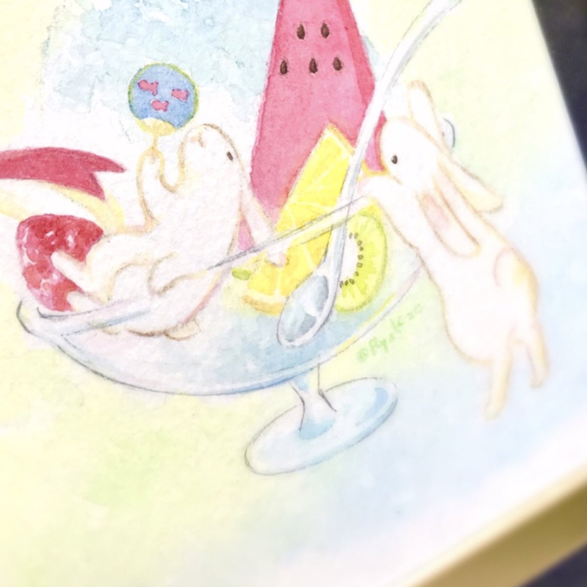 #ガチ制作会 夏うさぎできましたー!🍉🍋🥝 wip投稿するの忘れてました… #ギャラリーメトロノーム さんに送り出します🐇 #絵柄が好みって人にフォローされたい #イラスト #透明水彩 #創作の狼煙 twitter.com/RyoKzc/statu…