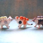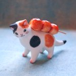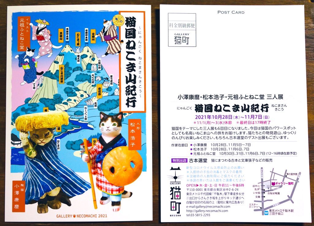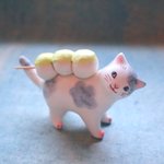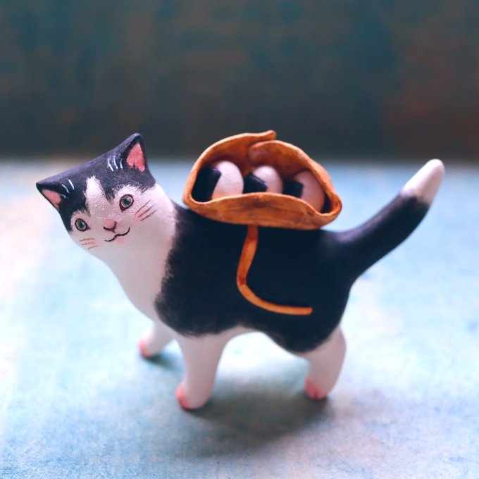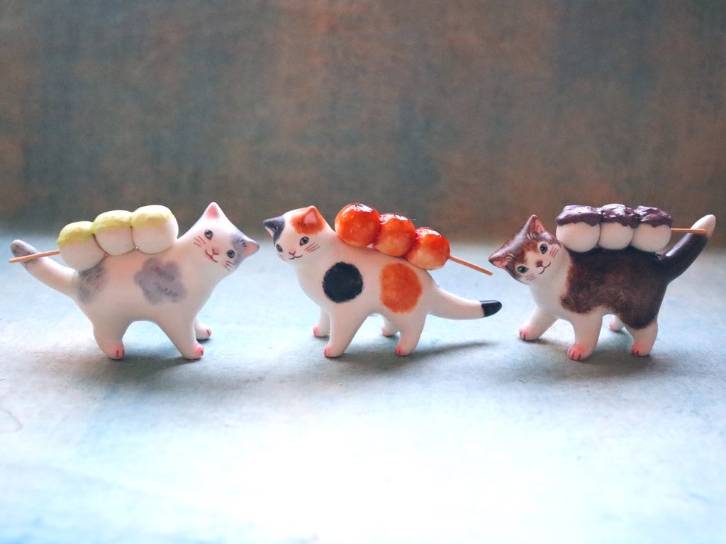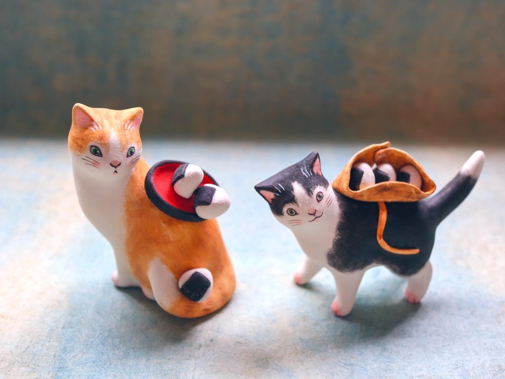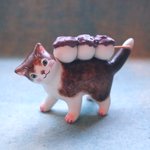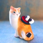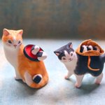 #猫国ねこま山紀行 ねこま山みやげ『えんむすび』を運ぶネコさん🐈🍙 むすび茶屋のお手伝いネコさんは「そっちは落っこちなくていいねぇ」と見ています😄 #ギャラリー猫町 twitter.com/momonekodou/st…