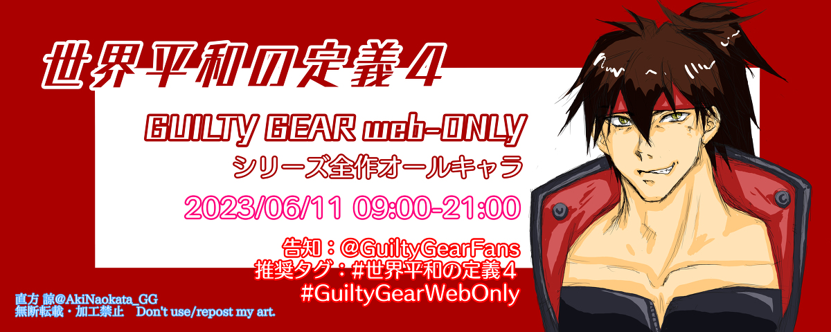 2023/06/11GGWebOnly『世界平和の定義4』開催 #ギルティギア #ギルティギアストライブ #GUILTYGEAR #GGST #GuiltyGearSTRIVE #ソル=バッドガイ #世界平和の定義4 pixiv.net/artworks/10399…