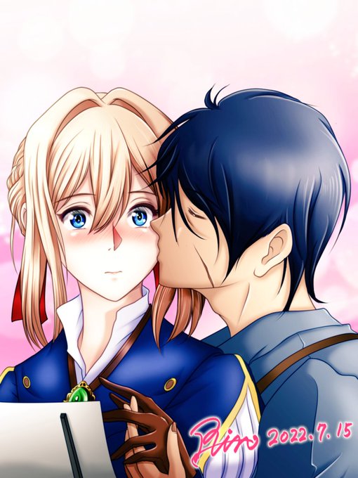 カタカタカタカタ…… 「ヴァイオレット、ちょっといい?」 「はい。なんでしょう少佐」 ……ㄘゅ💕 ( ⸝⸝⸝• ̫•⸝⸝⸝ )ボッ❤❤❤ ……なギルヴァイ🥰 さて止まってる漫画描こう😙 #ヴァイオレット・エヴァーガーデン #ギルヴァイ #イラスト #絵描きさんフォロバ100