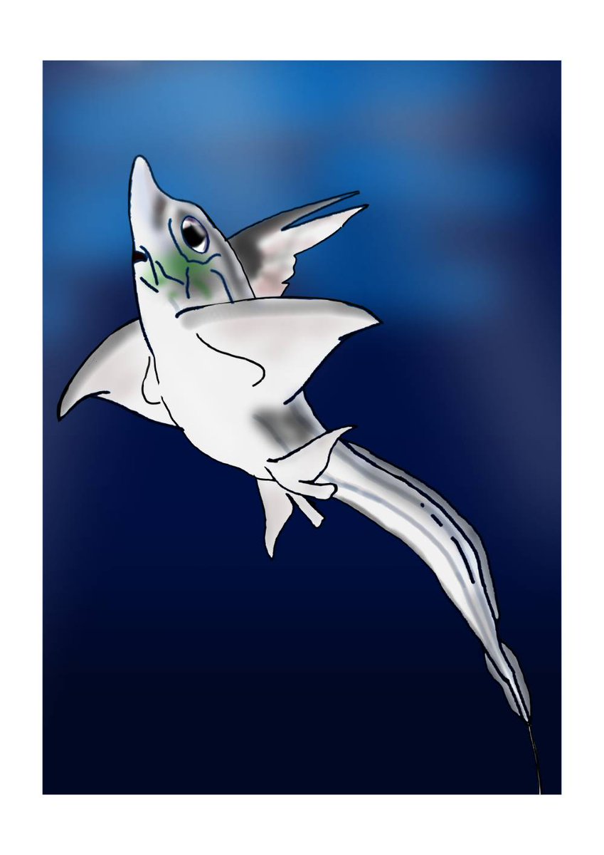 ギンザメの仲間であるスポッテッドラットフィッシュを擬人化させました。 貧しいながらもしたたかに生きる盗賊娘です。 #イラスト #イラスト好きな人と繋がりたい #絵描きさんと繫がりたい #創作 #創作イラスト #擬人化 #深海魚 #ギンザメ #スポッテッドラットフィッシュ
