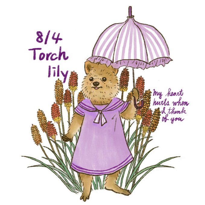8/4の誕生花はトリトマ。花言葉は恋する辛さです。 #絵本 #挿絵 #可愛いイラスト #カットイラスト #animalillustration #アートワーク #動物イラスト #イラストレーション #落書き #イラスト好きな人と繋がりたい #花イラスト #植物イラスト #イラスト #クアッカワラビー #quokkawallaby