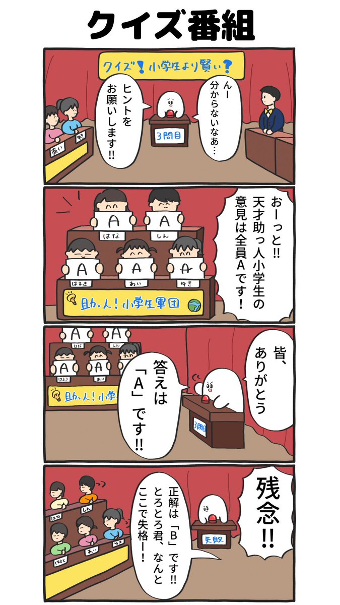 ビビ‼︎っとびびび君、36話『クイズ』 #4コマ #4コマ漫画 #宇宙人 #びびび君 #クイズ #クイズ番組 #クイズマジックアカデミー #漫画が読めるハッシュタグ #マンガが読めるハッシュタグ #クイズアタック pixiv.net/artworks/10007…