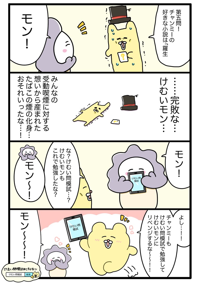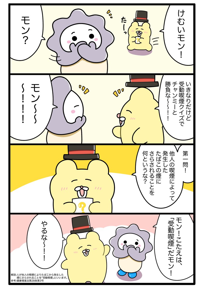 みんなは受動喫煙防止の法律って知ってるな? ( ◠∞◠ ) チャンミーがクイズで教えるな! ( ◠∞◠ ) ▼全国統一けむい問模試はコチラ jyudokitsuen.mhlw.go.jp/moshi/ #なくそう_望まない受動喫煙 #けむいモン #クイズ #PR