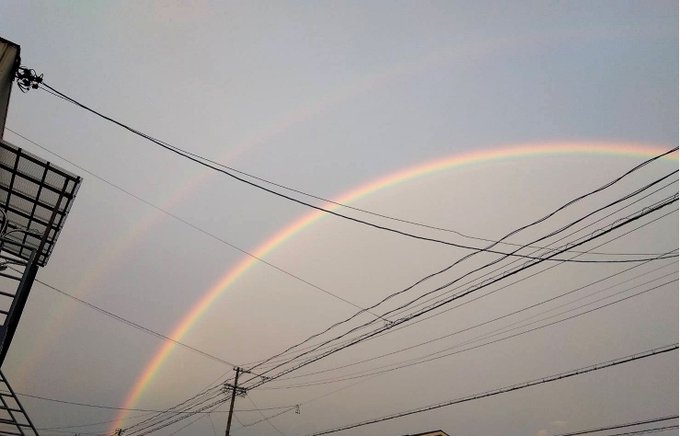 昨日見た #二重の大きな虹 色もくっきり鮮やかでした。 雨降りのお家時間、クイリングで #虹色キラキラペン 作りました🌈 #いいことありそうな虹 #虹のグラデーションがキレイ #クイリングアート #ペーパークラフト #KuruKuruQuilling