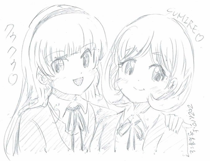 #みなさん去年の今頃はどんな絵描いてましたか 去年の今日は出勤前に #ラブライブスーパースター の #クウすみ 絵を鉛筆で描いてツイッターとpixivに投稿。帰宅後に色鉛筆で彩色して同様に投稿したのですがpixivブックマーク数はモノクロ絵の方が今もって多く。色付けが苦手なんだなぁと😓 #Liella