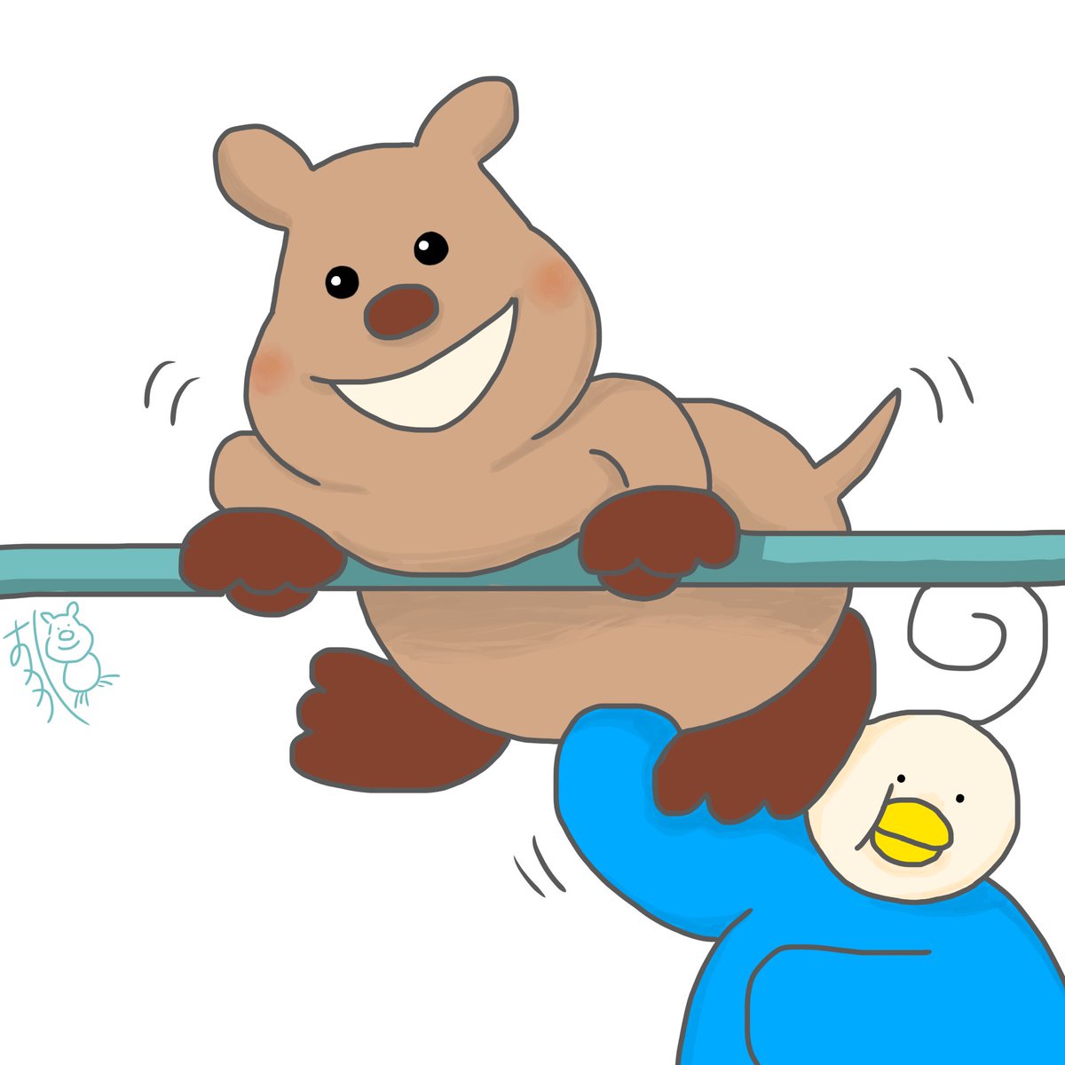 『クオッカの秘宝⑤』 猫村おかか様とのコラボ企画💰 クオッカに捕まってしまった2人だが、どうやら秘宝を見せてくれるらしい⁉️ #クオッカ #リップバニー #4コマ #4コマ漫画 #漫画が読めるハッシュタグ #みんなで楽しむTwitter展覧会 #イラスト好きな人と繋がりたい #絵描きさんと繋がりたい