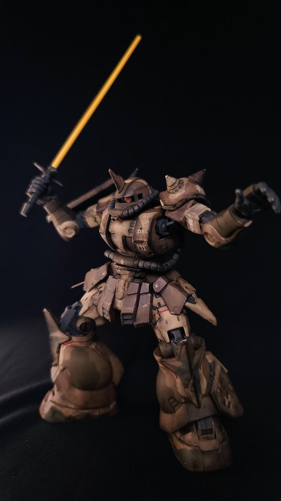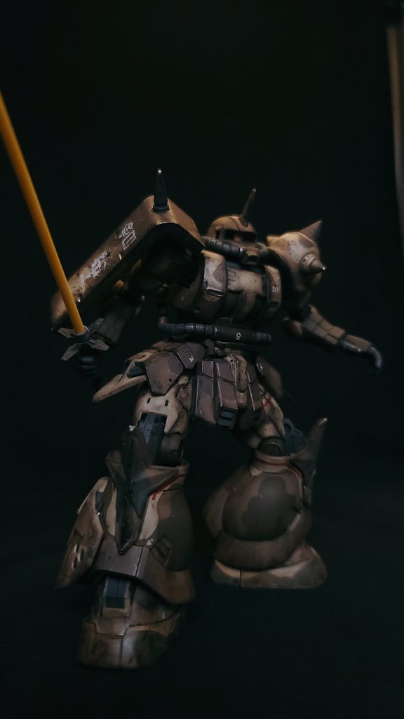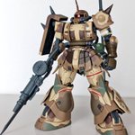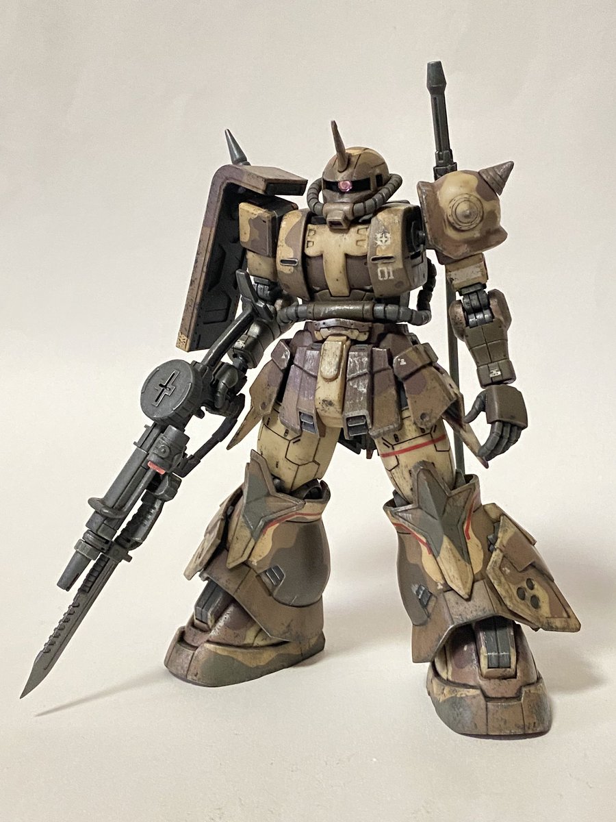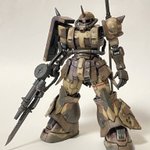 ツヤがどうしても消えないので諦めました。ドアンザク完成とします。ひさびさのウェザリング。今年はザク連チャン #ガンプラ好きな人と繋がりたい #ガンプラの画像を貼るとRTされると聞いて #ガンプラ #ククルスドアンの島