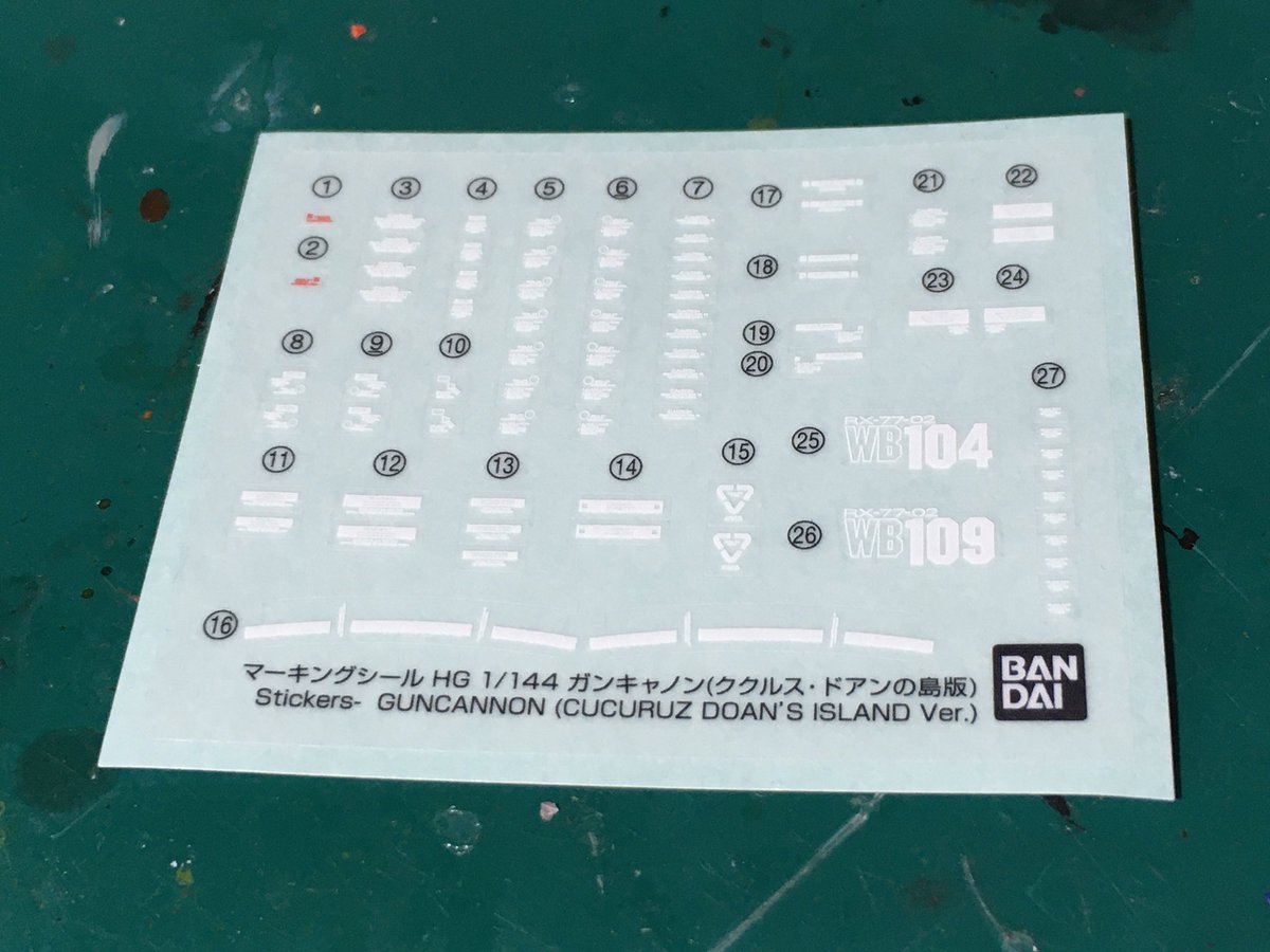HGガンキャノン ククルスドアンの島Ver. のデカールを貼ろうと思ったら・・シールかよ!💢なんでデカールじゃないの?こんな細かいマーキングがシールじゃ触ってるうちに剥がれちゃうじゃん!アホか!😓💢 #ガンキャノン #ガンプラ #ククルスドアンの島