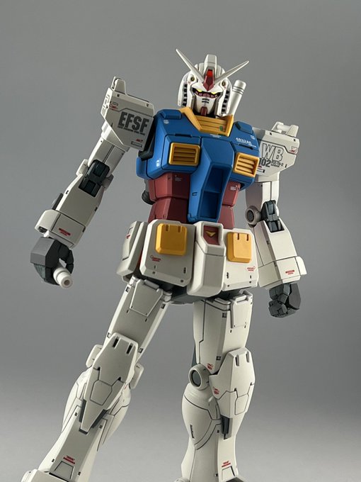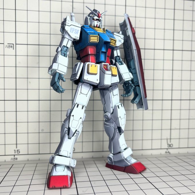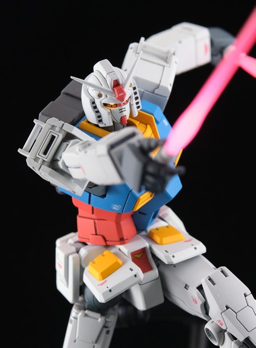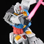 HGオリジンガンダム【ククルス・ドアンの島版】完成しました! 設定画に合わせて配色、細部を調整して、印象的なポーズようにサーベル寝かせ持ち手も作りました。 リプに続きます。 #ククルス・ドアンの島