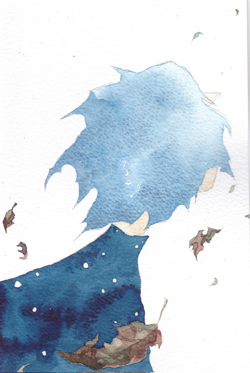 シャイニーブリザード キラキラした冷たい深い青色でした。とても綺麗。 割りと濃いめに塗っても柔らかめな感じがします。 濃淡がとても綺麗に出ます。 服はウィンザー&ニュートンの絵具です。 #イラスト #透明水彩 #アナログ #illustration #watercolorpainting #クサカベ #ハルモニア
