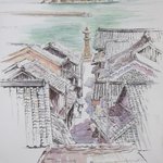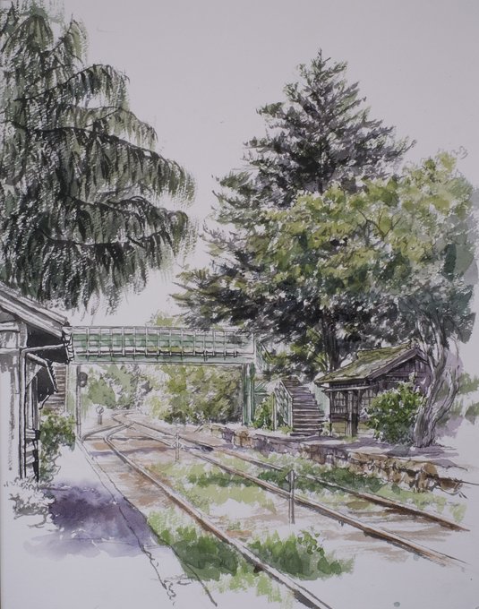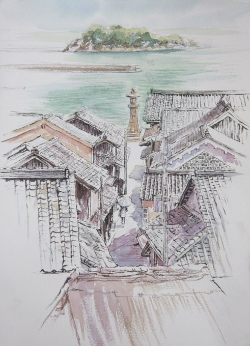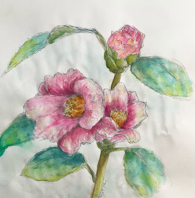 僕たちの季節が巡り終えても 公園の椿には季節が訪れ続けるだろう 夕暮れの中を歩く 毎日の終わりを繰り返しながら 残された春への恋路 [ #水彩画 #クサカベ水彩絵の具 ] [ #museクロッキー B5 ]