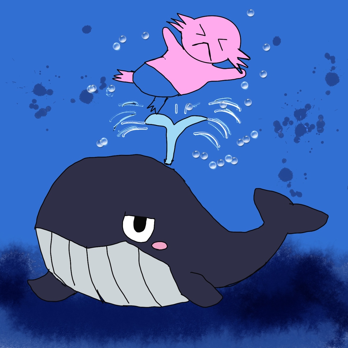 本日『#クジラの日』でした🐳 10月は機動戦士ガンダム 水星の魔女 に アマプラでは仮面ライダーブラックサン… これは忙しくなりますな😊 はやくこいこい10月~🕺🎶 本日も皆様、お疲れ様でした🍻 #イラスト好きな人とつながりたい #みんなで楽しむTwitter展覧会 #イラスト #1日1絵