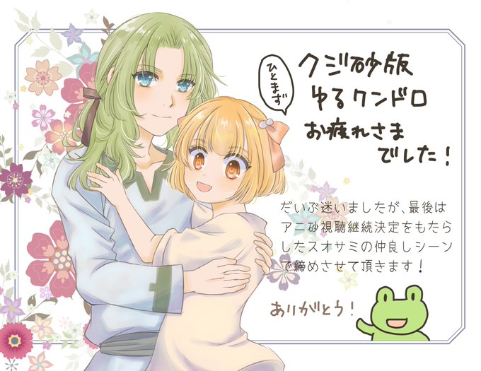 "オウニ…!""まだやることあんだろ…!" 大大大遅刻で申し訳ないです!クジ砂最終巻そしてゆるワンドロも最終回。運営様、今までありがとうございました😭砂の民の素敵な作品を拝めて嬉しかったです✨ #クジ砂版ゆるワンドロ最終回