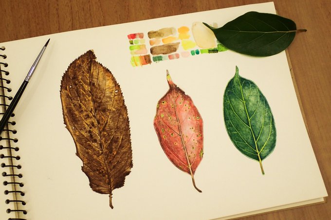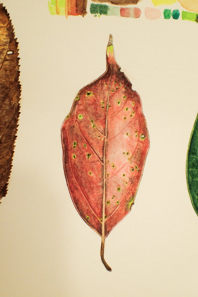 久しぶりに水彩で描きました。台北にはあんま秋が感じないが、ちょっと秋っぽいなものを描いてみました。 #植物画 #Botanicalillustration #カンヒザクラ #クスノキ #illustration #イラスト #水彩