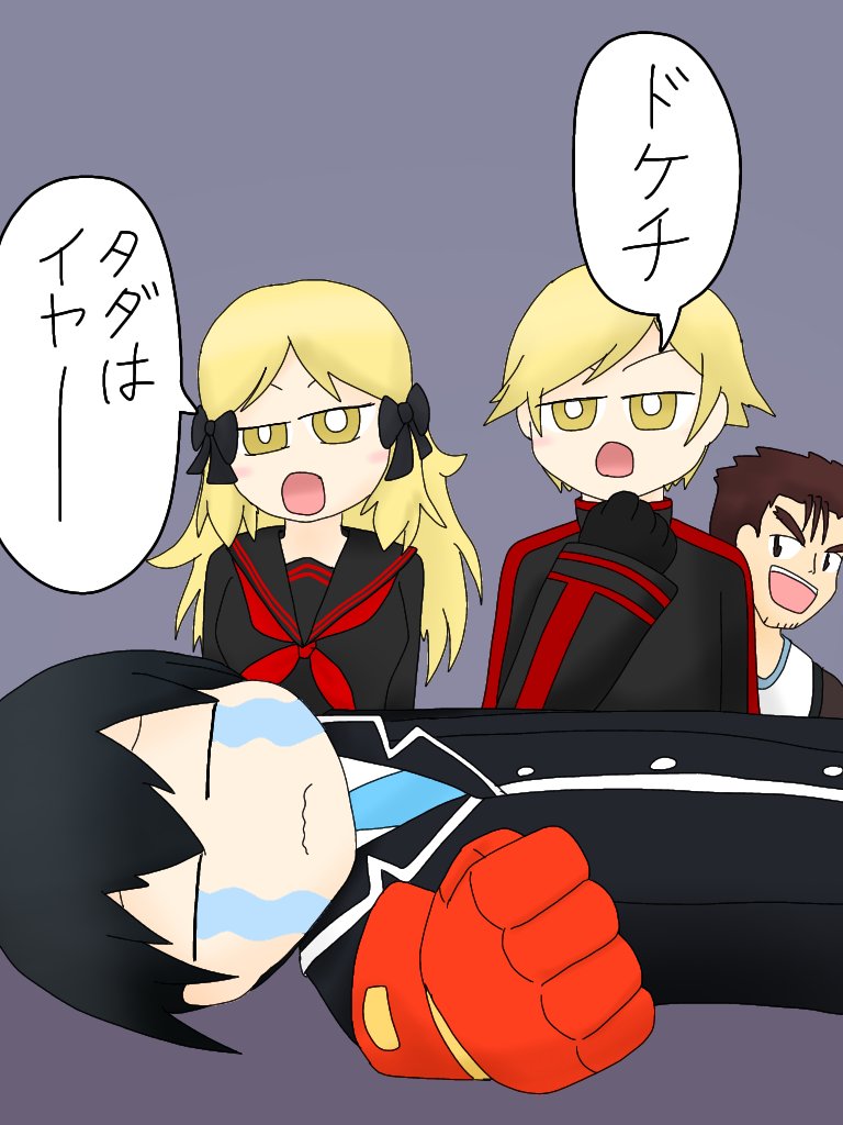 【ヌギャー】ゆゆうじょうパパワー! からすまニキのヌギャー実況を見終わったので描いてみた。 (※この2人は出会って間もないのに必殺技「友情パワー」が使えます) #神代學園幻光録クル・ヌ・ギ・ア #ヌギャー #クソゲー #絵描きさんと繋がりたい #絵柄が好みって人にフォローされたい
