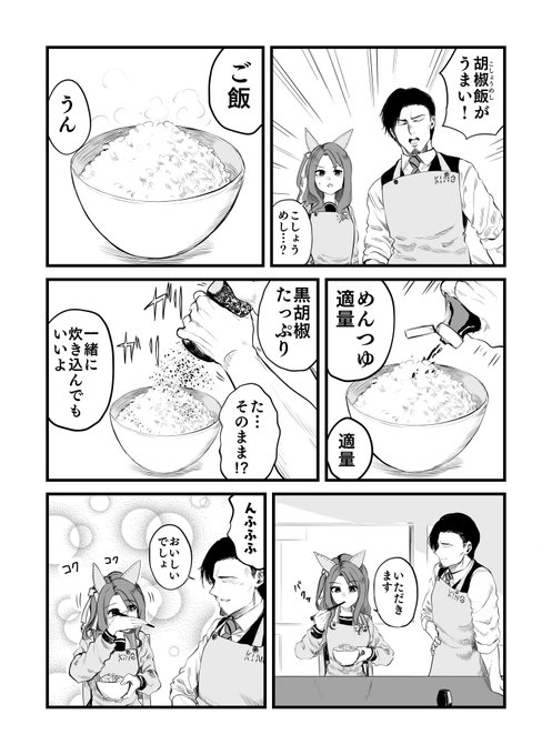#ウマ娘 #クッキングヘイロー キングとトレーナーの胡椒飯 (簡単で本当に美味しいです。ぶっちゃけ飯に胡椒かければ何でも良いんですが、もっと美味しくなるアレンジや細かいレシピは有識者の方お願いします)