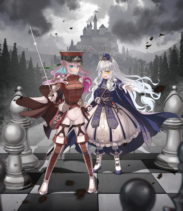 リクエストありがとうございました! 王女とロイヤルナイトというお題をいただいたので、軍服系で彩度抑え目チェスモチーフにお仕立てしました~ skeb.jp/@kaname214/wor… #セツねえ #クッコロ・セツ休め #がおーあーと