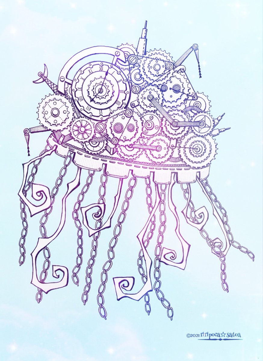 おはようございます✨✨ 今日もよろしくお願いします♪ ⚙クラゲ⚙ #スチームパンクイラスト #歯車イラスト #ペン画 #クラゲ #ド直球に言いますが今フォローしてくれてる人本当にありがとうございます