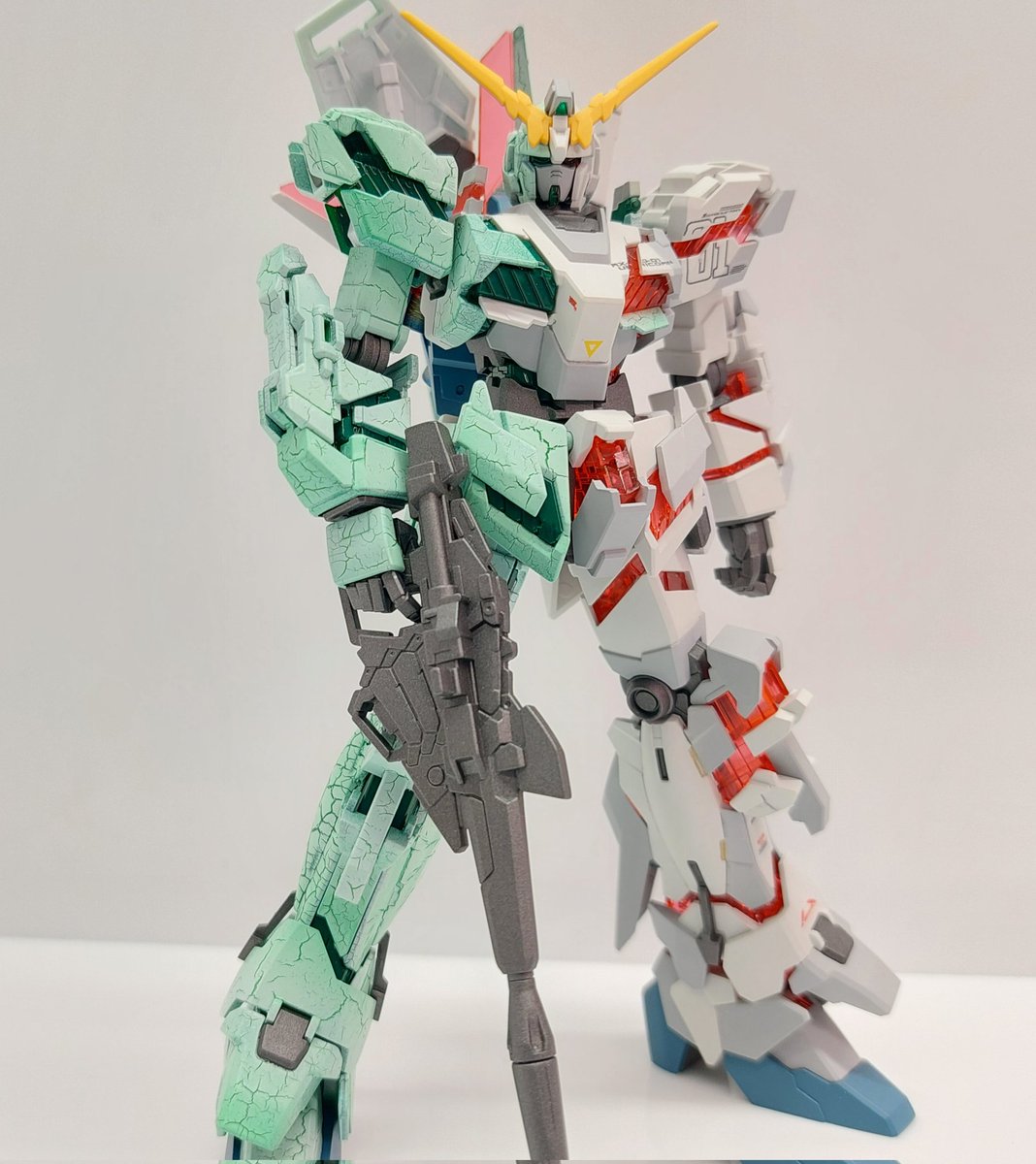 『オードリー…許して…君を守るためだから…』バージョンのHGユニコーン完成とします🎵 #ガンプラ #ガンダム #ガンダムUC #クラック塗装 #ガンプラの画像を貼るとRTされると聞いて #ガンプラ好きな人と繋がりたい #ガンプラは究極の自己満足