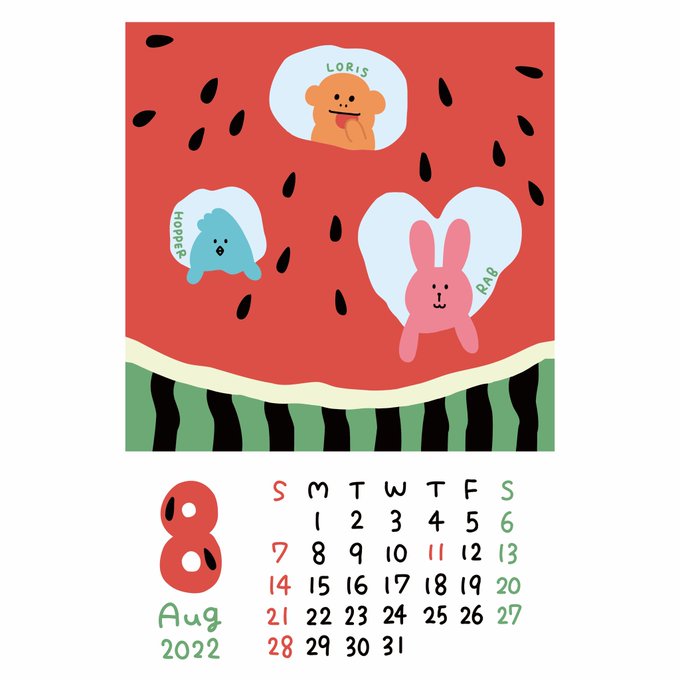 ・ 1日遅れましたが8月のカレンダーです🍉 スイカホリッカーな私にとって 最高のシーズン🍉🍉💪 今月もセブンイレブンでプリント出来ます💛🫶 予約番号GX9QUX98 A4 カラー:60円 2022/08/09迄 #craftholic #クラフトホリック #calendar #カレンダー #illustration #イラスト