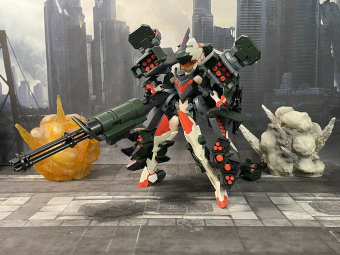 本日の作業成果です(˘ω˘) ヴィーの追加武装をヘビーアームズみたくしてみました。 エクステンドアームズ3のミサイルとMSGミサイル山盛りにしてみました! #クリエイターズワン #メガミデバイス
