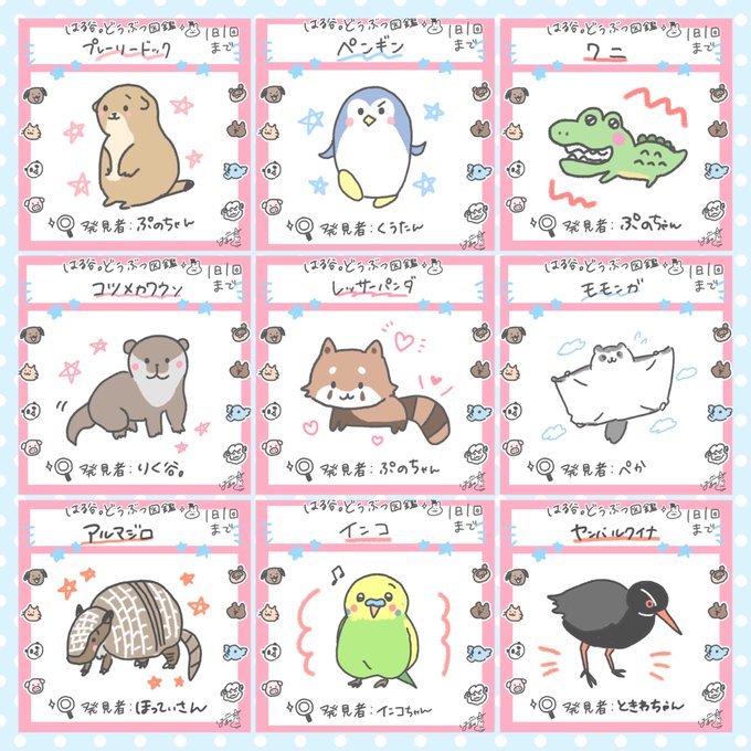 お絵描き配信限定! 🌸300コインランダム3回プラス 🌸800コイン以上ランダム1回プラス で、どうぶつ図鑑更新企画💖 画像は最近書いた中のお気に入り動物たち❣️ 発見リスト、更新中🎶 #クリエイターライバー #お絵描き配信 #17LIVE