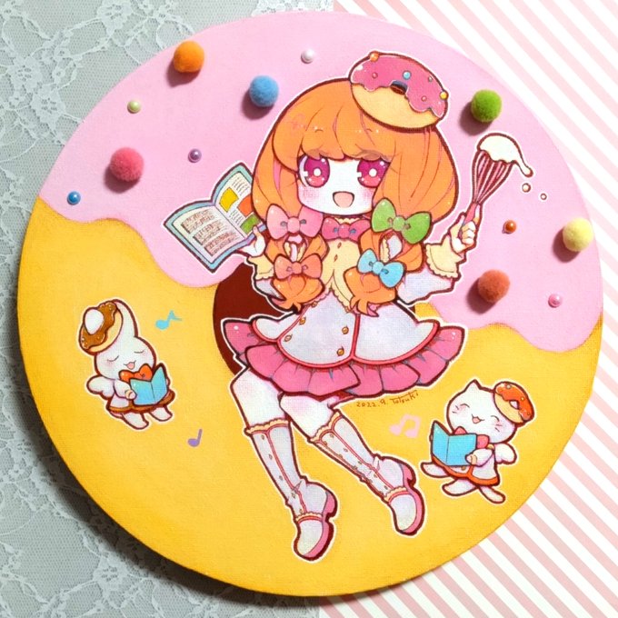 私もクリエイト・コラボレイト2の準備、宣伝に力を入れていきたいと思っております💪 ちなみにトツキは、1点はこちらの作品を展示予定です! キャンバスにアクリル絵の具とマジックマーカーで描きました! 【クリスマスの製菓隊】という作品です🍩👼 #クリエイト・コラボレイト2 twitter.com/RE_Exhibition/…