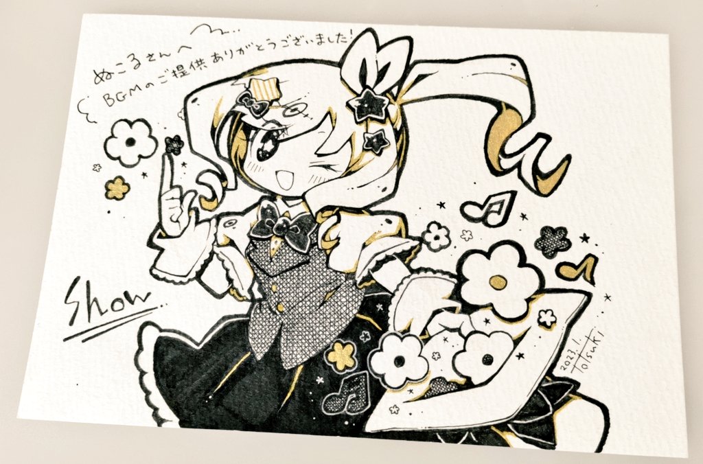#クリエイト・コラボレイト2 の会場BGMをご提供くださったぬこるさん @sumanaiBAL へお送りしましたお礼イラストの原画です🙌 お会いできる機会がありましたら、いつかお渡ししたいです……! ぬこるさん、素敵なBGMありがとうございました!