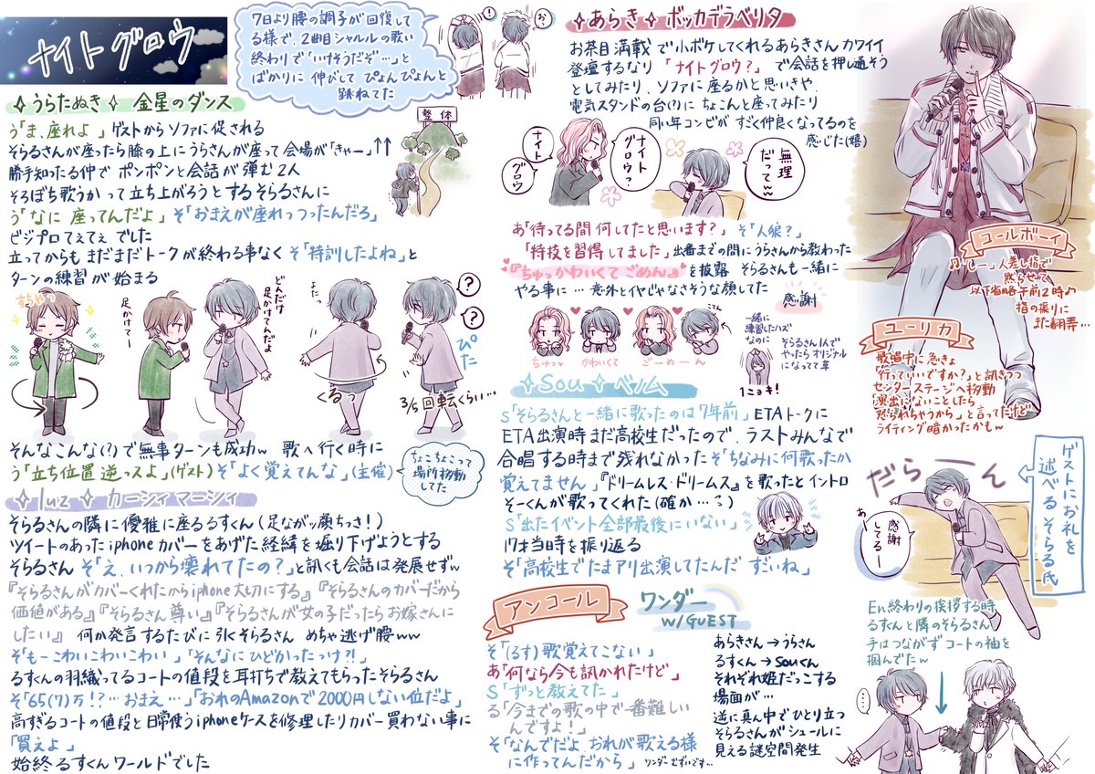 SORARU ARENA LIVE 2023 -クリスタリアルスカイ-ナイトグロウ ライブレポ兼感想です! 素敵なライブありがとうございました!!! Souくん中心なんですけど雰囲気だけでも伝われば…! #クリスタリアルスカイ #おえかきSou庫