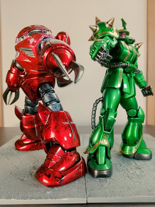 #クリスマスだし緑と赤をフォルダーから探せ 便乗させて頂きます🙇 我が軍の緑と赤のツヤピカ担当のツーショットです。 クリスマスっぽく見えて頂けたら幸いです🙂 寒さも厳しいので皆様体調にはお気をつけ下さいませ。 #ガンプラ #ガンプラ好きと繋がりたい