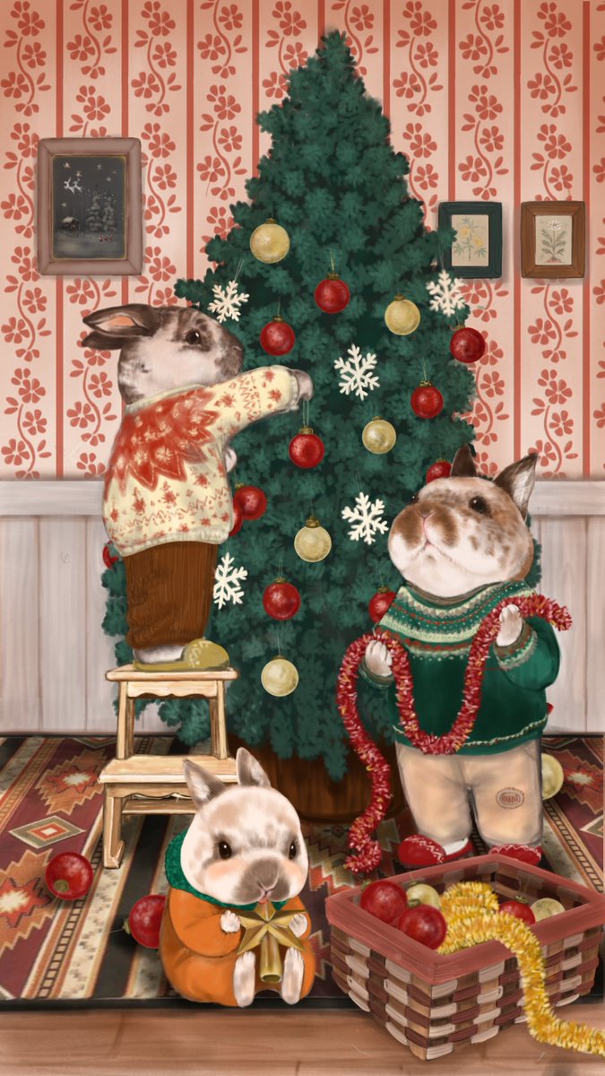 クリスマスイラストを描くぞ描くぞ〜と11月から描いてたイラスト。クリスマスに間に合ってよかった… #クリスマスツリーイラスト #イラスト好きさんと繋がりたい #絵描きさんと繋がりたい #うさぎ好きさんと繋がりたい #アイビスペイント