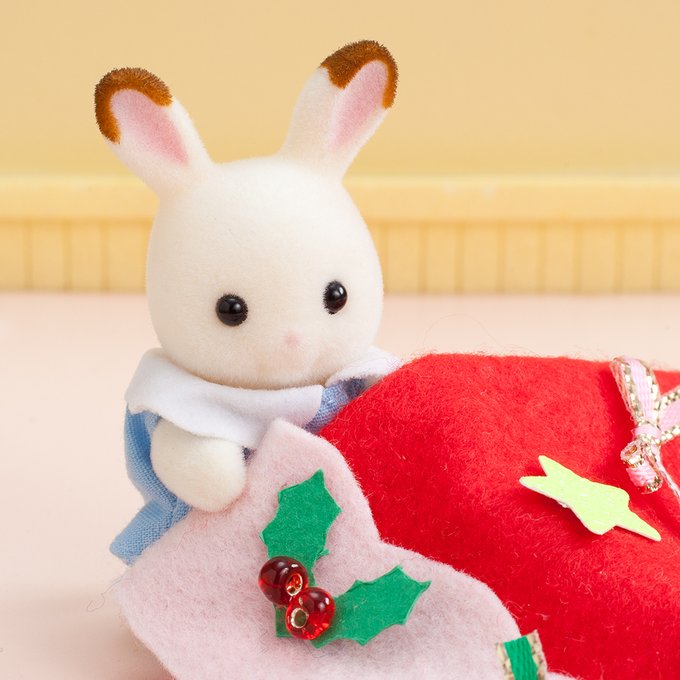 「これくらいおおきいくつしたが、あんしんですね!」 ショコラウサギのクレムはクリスマスに備えて靴下を準備中🧦 クレムったら、こんなに大きい靴下でどんなプレゼントをもらう予定なんでしょうか…? #シルバニアファミリー #シルバニア #クリスマス #クリスマスプレゼント #シルバニア赤ちゃん