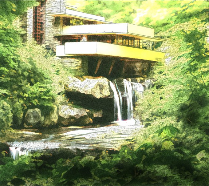 「落水荘(Fallingwater)」 #風景 #オリジナル #背景 #イラスト #デジタルイラスト #クリップスタジオペイント #絵 #落水荘 #Fallingwater #デジタル pixiv.net/artworks/10007…