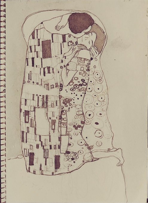 クリムトの「接吻」、描けました。模写、想像以上に神経を使いますね( ´;゚;∀;゚;) いろいろ感じることができたし、自分の絵に活かしていきたいです。 #模写 #クリムト #絵描きさんと繋がりたい #私の絵柄が好みって人にフォローされたい #アナログ絵 #芸術の輪 twitter.com/28yn40/statu…