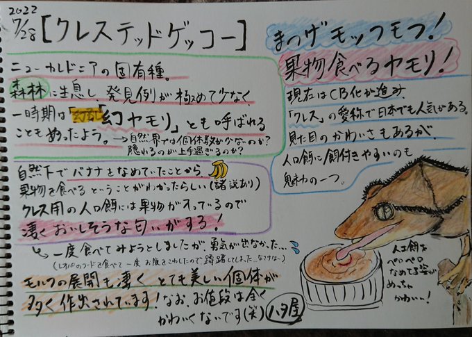 【7月 毎日投稿 ゆるゆる爬虫類図鑑】 28日目 クレステッドゲッコー 表情が愛くるしいヤモリ! どのモルフも美しいので、悩んじゃいますね✨ 私はリリーレッドが好みです(  ̄▽ ̄) #クレステッドゲッコー #クレス #爬虫類 #爬虫類好きと繋がりたい #イラスト